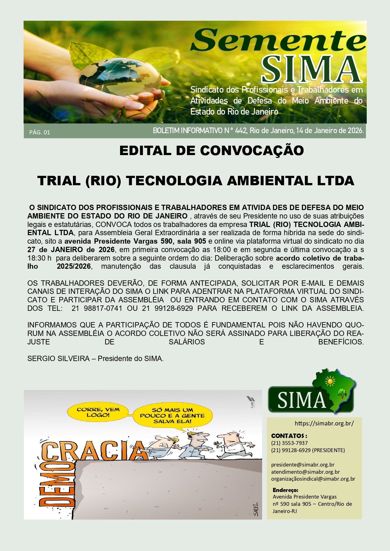 SIMA - Sindicato dos Profissionais e Trabalhadores em Atividade de Defesa do Meio Ambiente do Estado do Rio de Janeiro, entidade de primeiro grau, fundada em 12 de fevereiro de 1999, com abrangência Estadual, sendo legítimo representante dos trabalhadores nas empresas que exercem atividades de defesa do meio ambiente, cuja atuação seja aquela no sentido de cuidar, resguardar ou conservar o meio ambiente das várias atividades humanas. Nos dias de hoje, o SIMA vem representando trabalhadores em empresas nestes mais variados ramos de atuação, empresas estas que atuam em quaisquer atividades relacionadas ao meio ambiente com atuação direta ou indireta em sua defesa, incluindo as empresas de aglutinação, armazenamento, assessoria, beneficiamento, captação, classificação, coleta, comercialização, compactação, compostagem, consultoria, co- processamento, corte, depósito, descontaminação, disposição, enfardamento, estocagem, extrusão, fabricação, fundição, gerenciamento, granulação, incineração, lavagem, limpeza, moagem, mistura, operação, preparação, processamento, produção, queima, reaproveitamento, recolhimento, recondicionamento, recuperação, redução mecânica, reforma, remoção, reposição, refino, restauração, reuso, reutilização, revalorização, segregação, seleção, separação, transferência, transformação, transporte, tratamento, triagem, trituração, usinagem, valorização, varrição urbana para reciclagem e proteção do ambiente e destinação final de resíduos sólidos, líquidos, gasosos, perigosos, não perigosos, de saúde, hospitalares, inertes, não inertes,